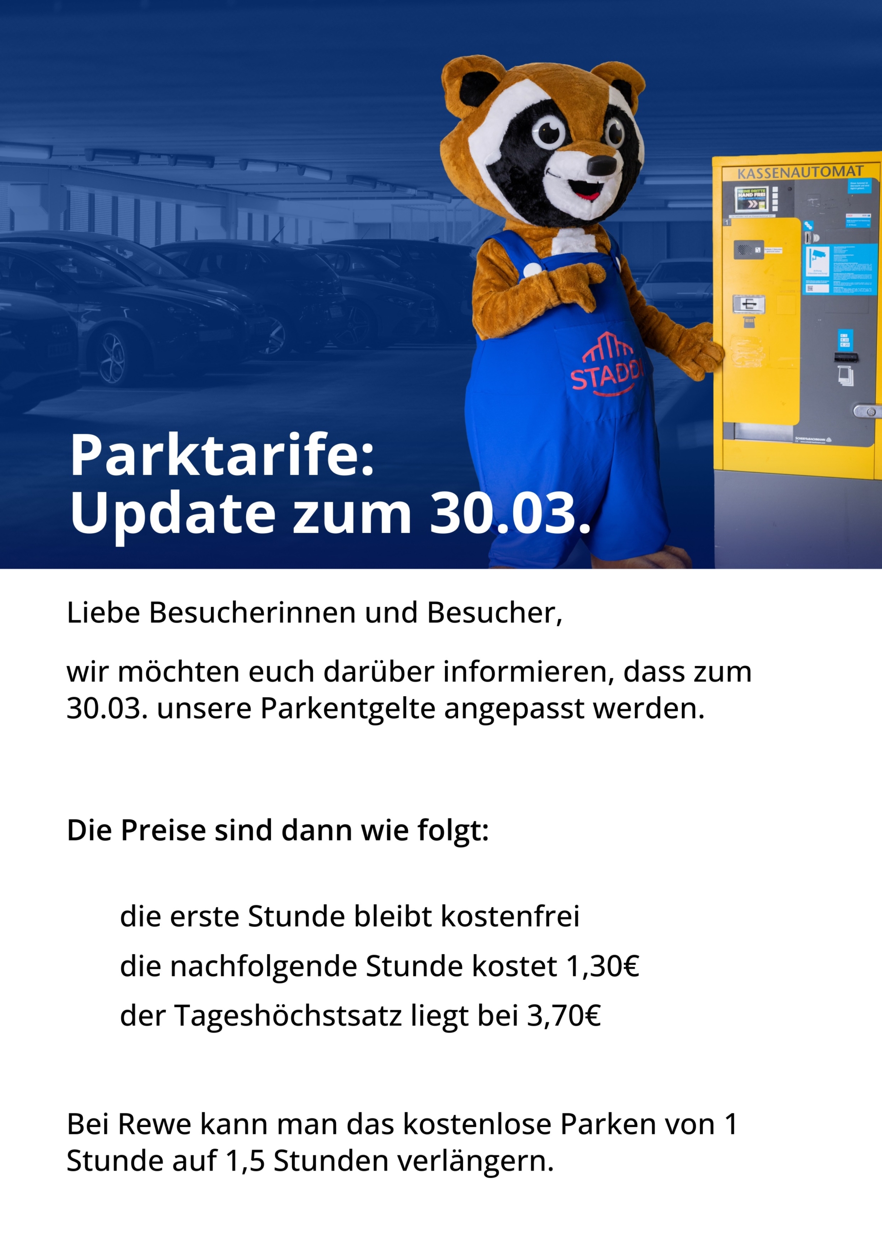 Wichtige Information zu unseren Parktarifen ab dem 30.03.2026